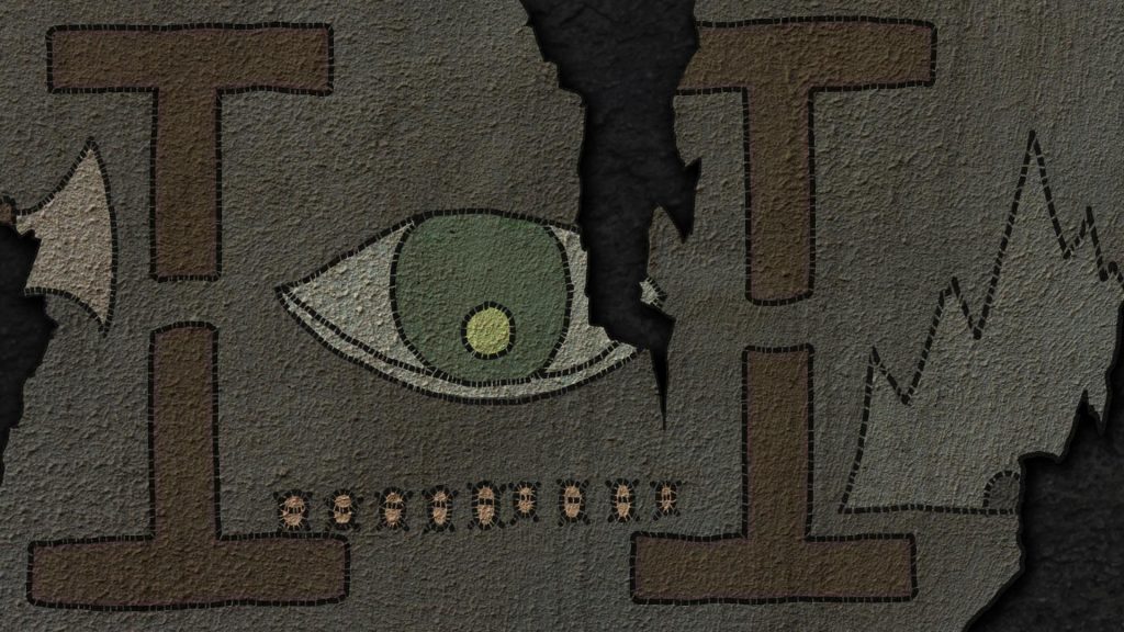 Während sie hier herumwühlten, war Tim leider aus unwetterbedingten Gründen nicht dabei, weswegen Norak weiter an dem Tunnel aus ihrer Halle heraus gearbeitet hat. Nachdem er einige größere Felsbrocken beseitigen oder verschieben konnte, gelangte er in einen größeren Raum mit Wandzeichnungen, von denen die meisten im Laufe der Zeit zerstört wurden. Das folgende Bild zeigt eine dieser Zeichnungen, die noch recht gut erhalten ist: