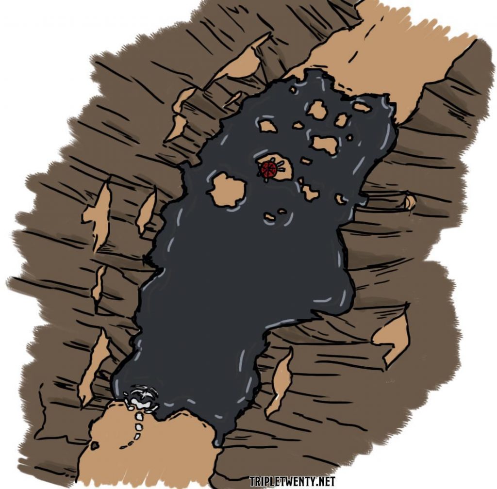 Aber widmen wir uns dem spannenderen Teil, der Folge selbst. Ich will nichts spoilern, aber während der Folge wurde es nötig, dass wir eine Karte haben. Ich hätte den namensgebenden Teersee sicher auch weiter verbal beschreiben können, aber die ersten Fragen zeigten schnell, dass jeder von uns ein anderes Bild im Kopf hatte. Also habe ich den Mauszeiger geschwungen und eine Karte gepinselt:
