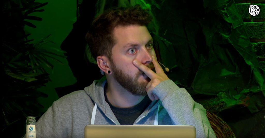 Als das Abenteuer begann und erklärt wurde, wer die Spieler sind, war mein erster Gedanke: das wird in einem Flugzeugabsturz enden. Insgeheim wollte ich aber wissen, wie ihr Abenteuer verläuft, wenn es keinen Absturz gibt, denn die Vorstellung, dass sie nicht gegen Monster und andere Menschen kämpfen müssen, sondern mit aufblasbaren Haien in einem Pool, während sie darauf würfeln, ob sie die Cocktails betrunken machen und damit ihre Charme-Proben bei der attraktiven Dame von Zimmer A38 beeinflussen, klang zumindest in meinem Kopf sehr ansprechend und unterhaltsam. Wer weiß, vielleicht kommt es ja so? Vorher kommt aber der Check-In und die Sicherheitskontrolle. Hier wurde der Community die Wahl gelassen, was einer der beiden Spieler überraschend in seiner Tasche finden würde. Und wer hätte wohl ahnen können, wie die Abstimmung ausgeht…